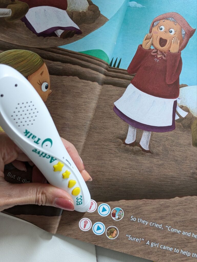 レッスンで先生が読んでくださった絵本も、音声ペンを使用してセリフを録音や再生することが出来ますので、英語の自宅学習に最適です。