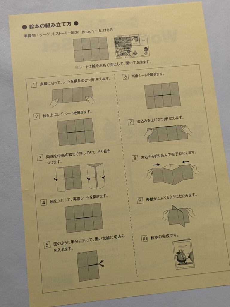ターゲットストーリー絵本シート(8冊)は、上の写真(右)ように予め組み立てます。