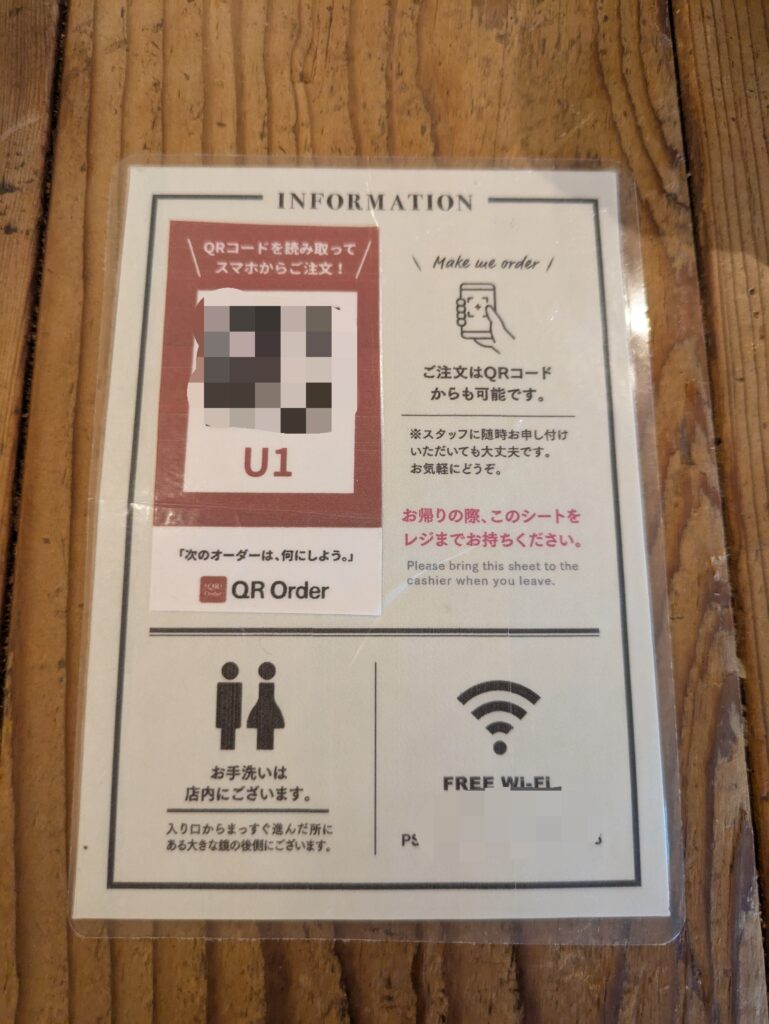注文はQRコードからで、Wi-Fiも完備していましたよ!