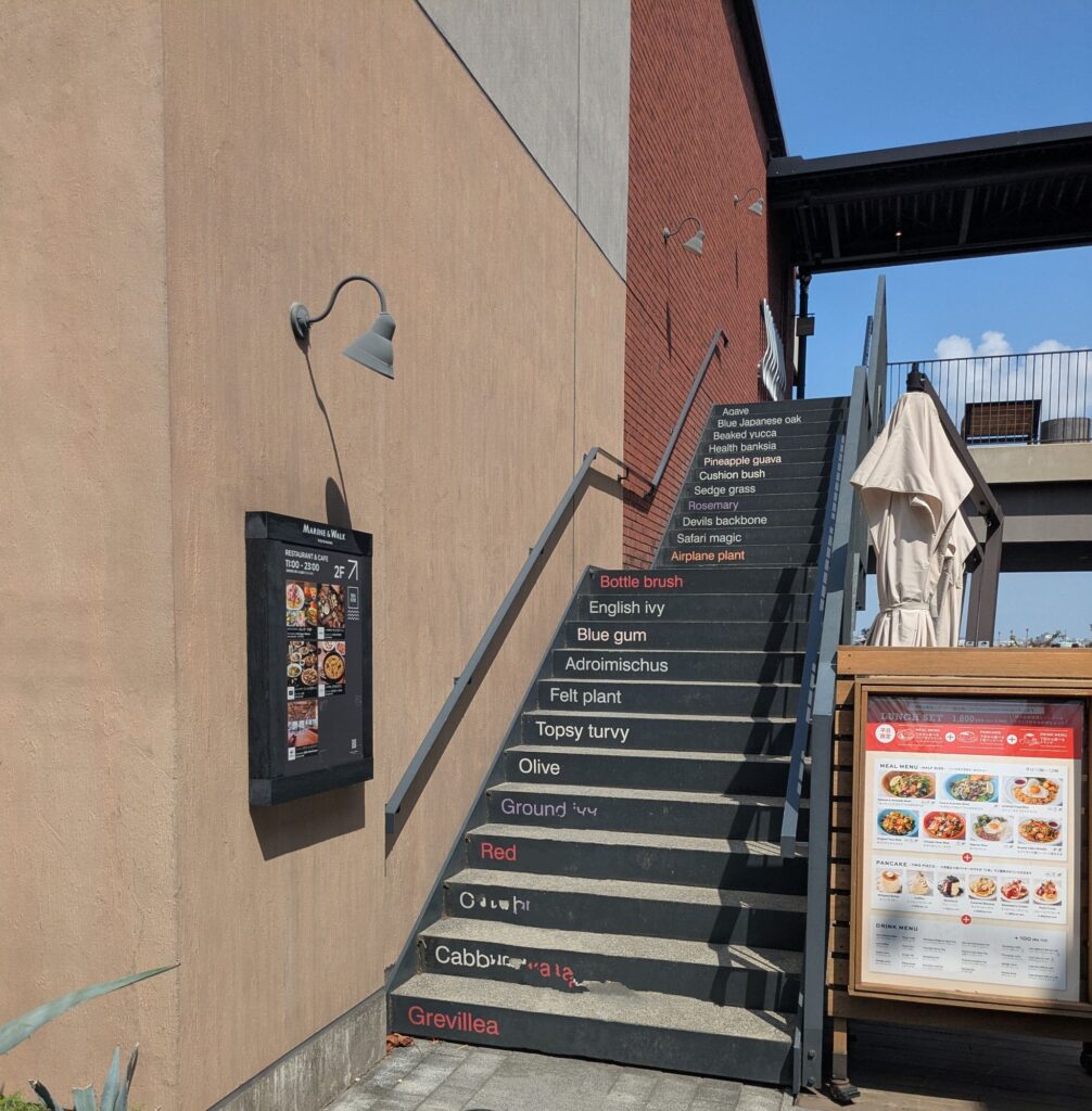 お店は、以下の写真の㉒の場所で、みなとみらいのマリン&ウォーク2階にあります。