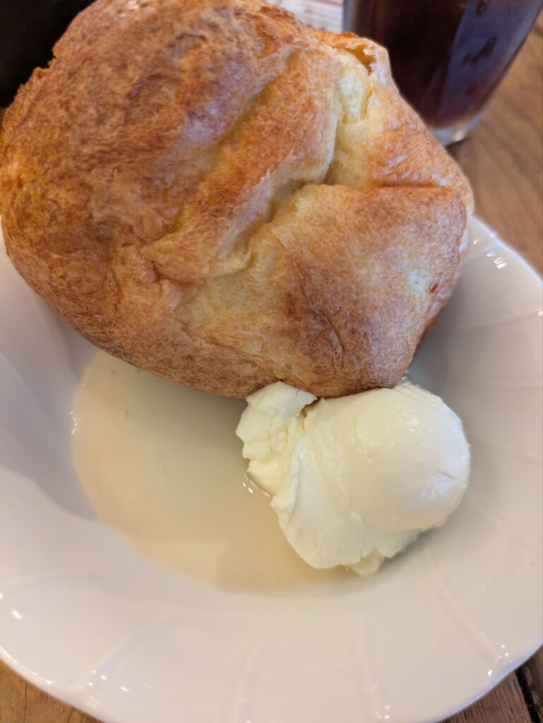私は、ポップオーバーに、クリームチーズとハチミツを付けていただきました!