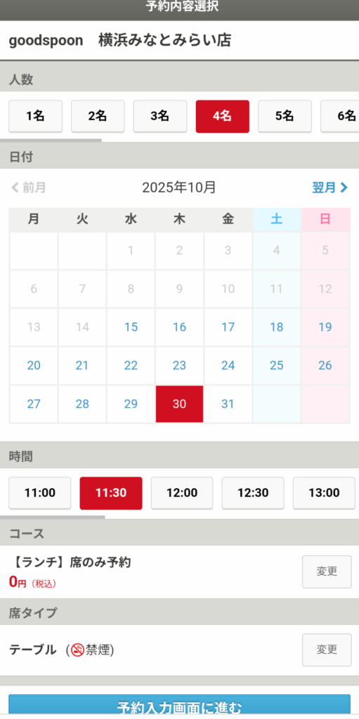 我が家は、good spoon横浜みなとみらい店のホームぺージから予約しました!