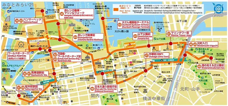 なおマリン&ウォークは、やや駅から離れているので、我が家は馬車道駅から「あかいくつ号」という、観光スポット周遊バスに乗車して向かいました!