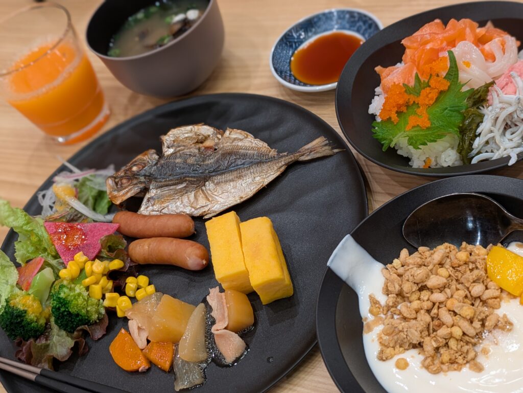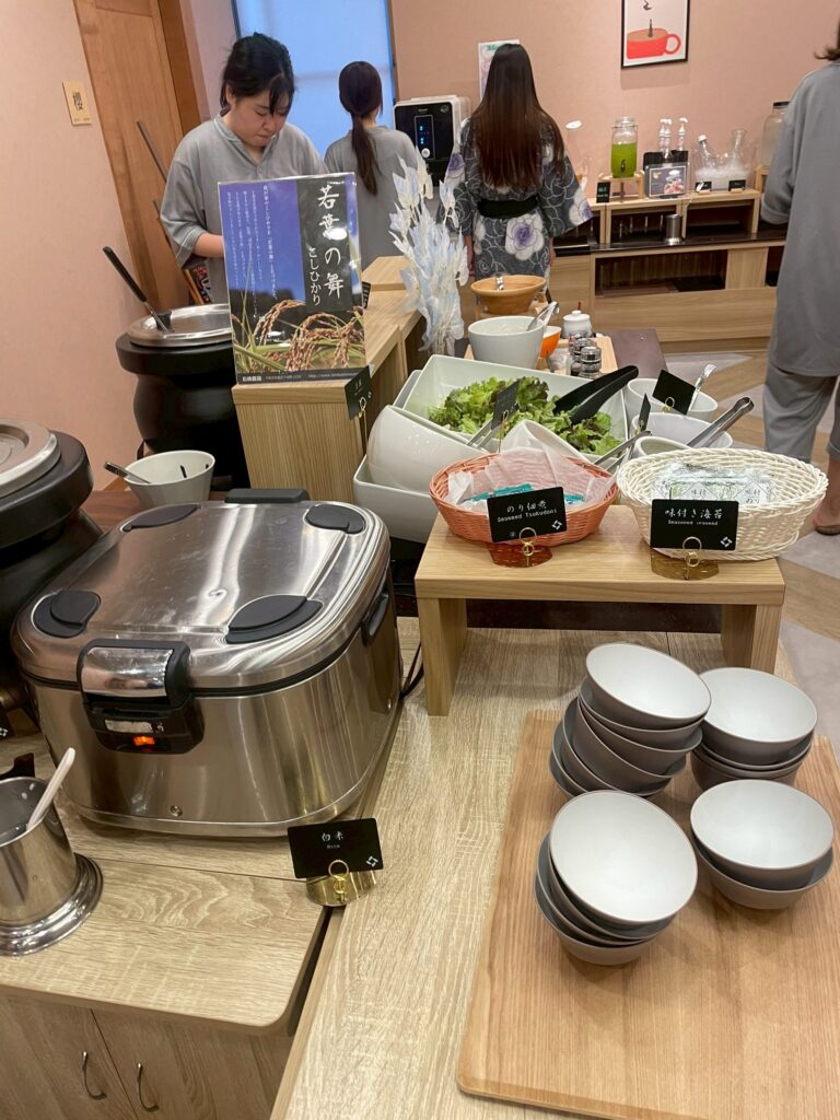 その他は、サラダ、ごはん、具沢山みそ汁、アヒージョ、小鉢等で、大規模ホテルの豪華ビュッフェを想像してしまうと、物足りない感じがありますが、どれもとても美味しかったです!
