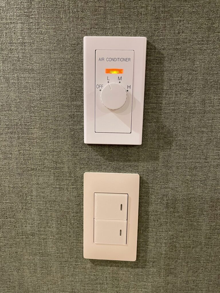 お部屋の空調はホテルの集中管理タイプのようで、室温設定は出来ないものの、風量の調整は可能でした^^