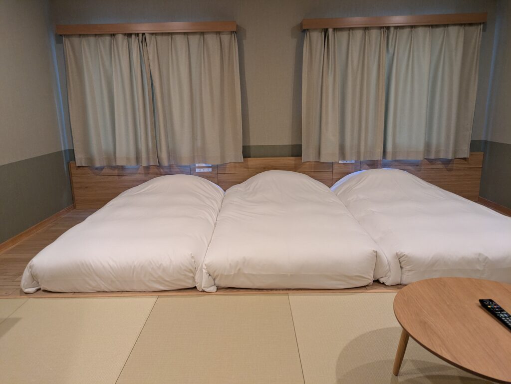 子連れは何かと荷物が多いし、子供も靴を脱いで過ごせるので、畳で清潔な部屋は助かりました!