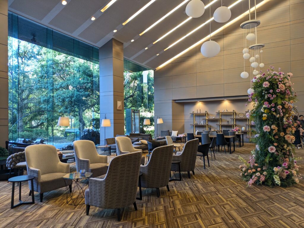今回は私が代表者としてチェックインを行ったので、チェックイン後は、すでにメインラウンジにいた家族と合流。