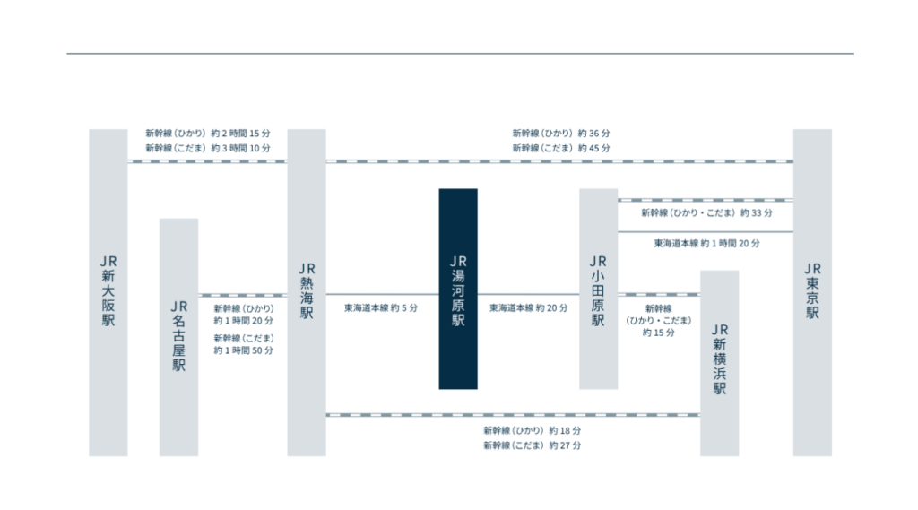 グランレクトーレ湯河原は、JR湯河原駅から車で約10分の場所にあり、とても便利な場所にあります!しかも無料送迎あり!