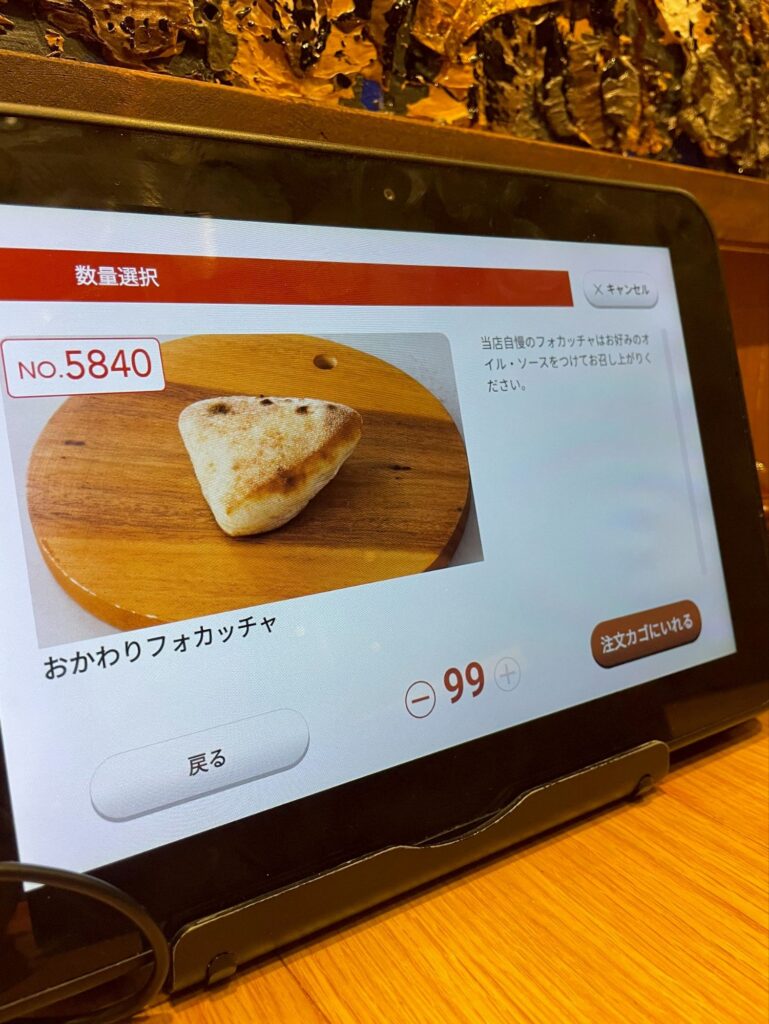 最初に3個持ってきていただいてからは、追加注文はサラダ同様、テーブルの端末から注文します。