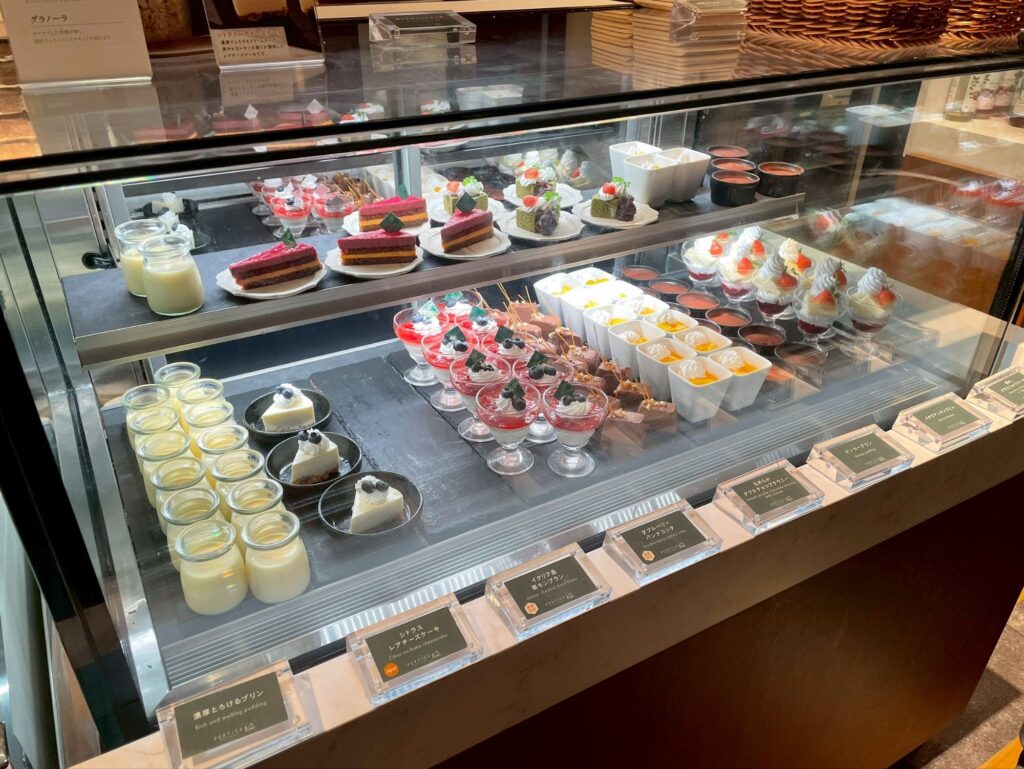 デザートコーナーでスタッフの方にカードを渡したら、ショーケースから好きなデザートを選びます!種類も結構豊富!!