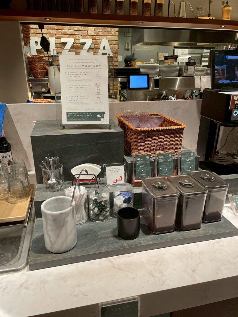 通常ドリンクバーは、コーヒーマシンのみがほとんどですが、ドリップコーヒーもありました!