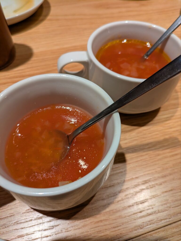 こちらが飲み放題のスープ。ミネストローネでした^^