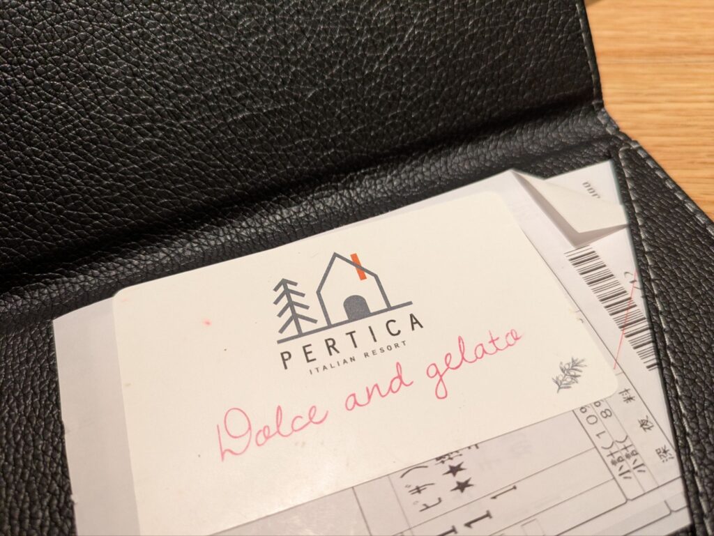 デザートを注文すると、スタッフの方が以下のカードを持ってきてくださるので、食べたいタイミングでデザートコーナーに行きます!
