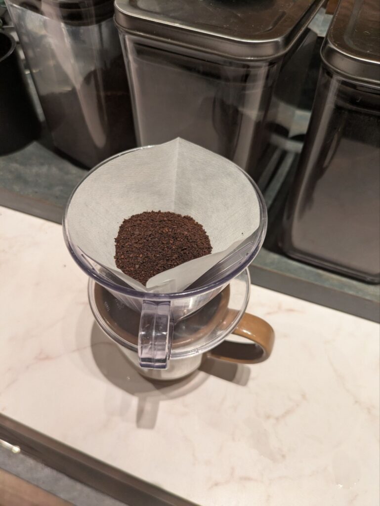 自身でドリッパーにフィルターをセットして、3種類の豆から好みの味を選んで淹れます。