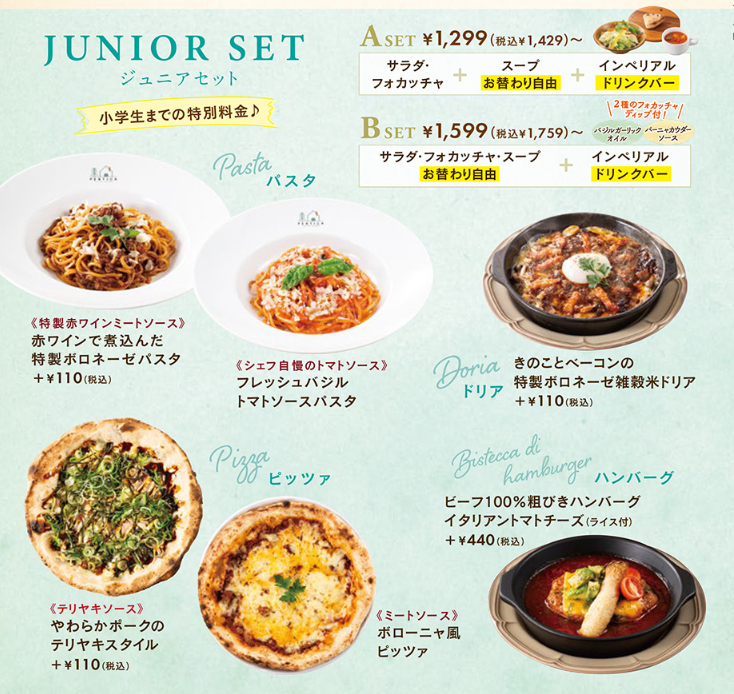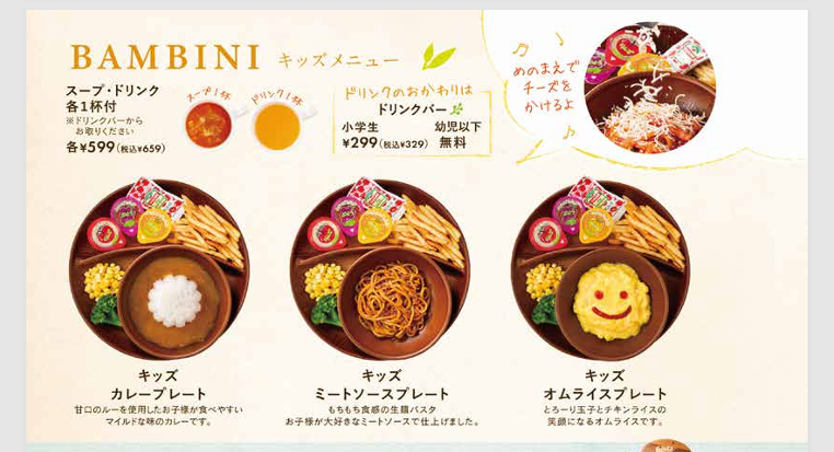 ※幼稚園児の場合、ドリンクバおかわり無料!