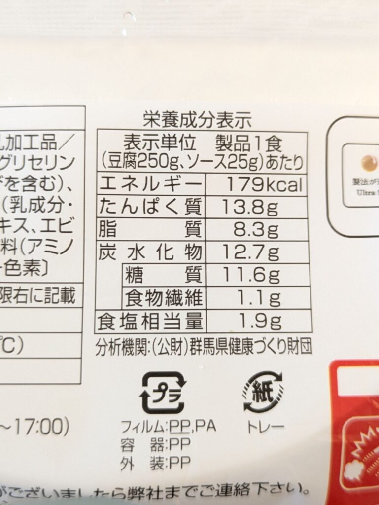 写真のとおり袋の表示を見ると、1食分のカロリー(エネルギー)は、179kcal