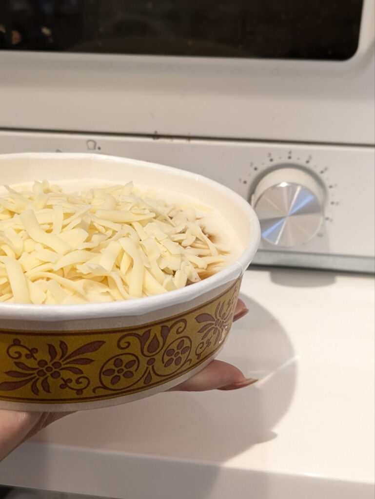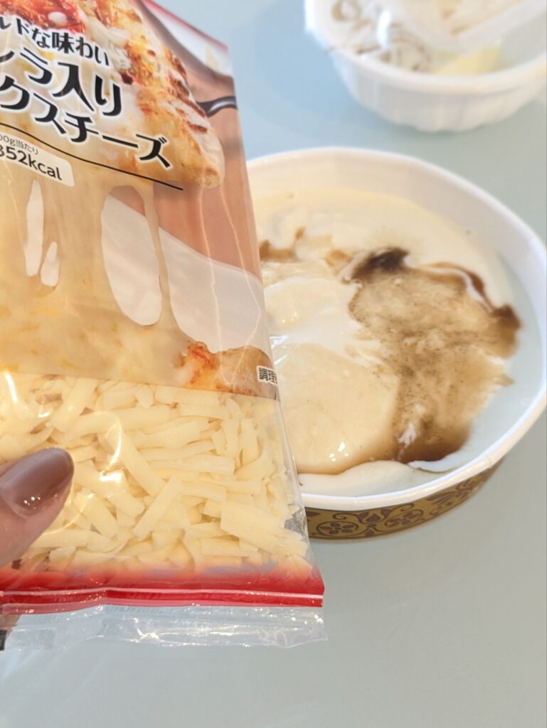今回は、よりグラタン感を出すため、とろけるチーズを乗せます!